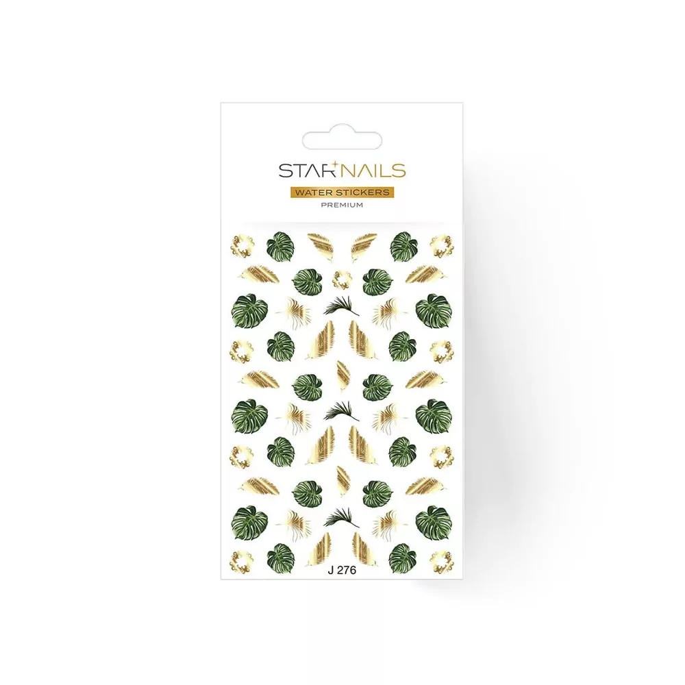 - 2D vodolepky na nehty J276 Vás potěší v jakémkoliv období. Na vodolepce najdete motivy listů v zelené barvy a zlatá peříčka.
