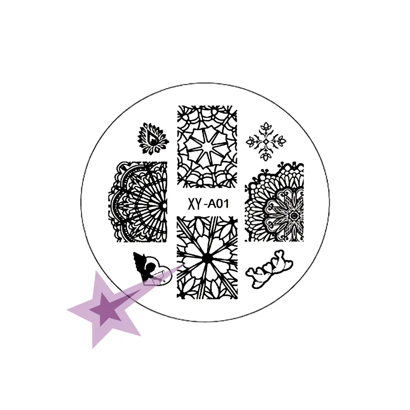 Kulatá razítkovací destička. Kovová destička krajky. Doporučujeme pro půvabné a elegantní nehty.