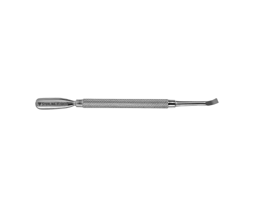 Nerezový oboustranný exkavátor STERLING. Profesionální zatlačovač nehtové kůžičky nebo také kopýtko. Protiskluzová rukojeť zaručuje pevný úchop a komfortní provedení práce při manikúře i pedikúře. Pusher je vyroben z nejkvalitnější chirurgické oceli odolné proti korozi. Kopýtko je zakončeno dvěma různými hroty používanými k zatlačení kutikuly. První z nich je široký 9 mm a druhý zakřivený 3 mm.